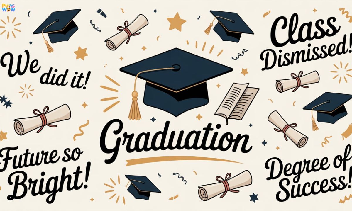 Graduation is a time to celebrate hard work and success. Funny puns and one-liners make the day even more special. They bring smiles to friends, family, and classmates. Using them in captions and cards is always a hit.